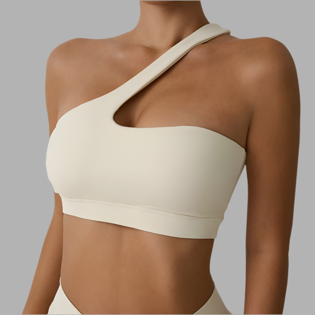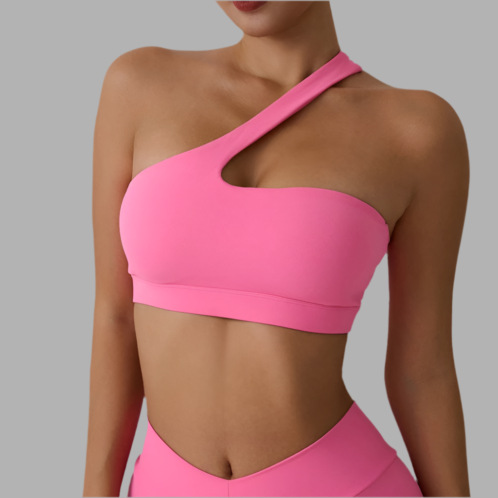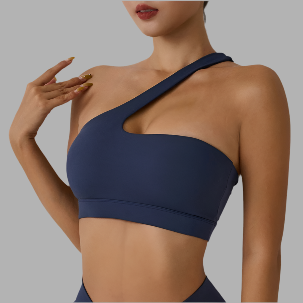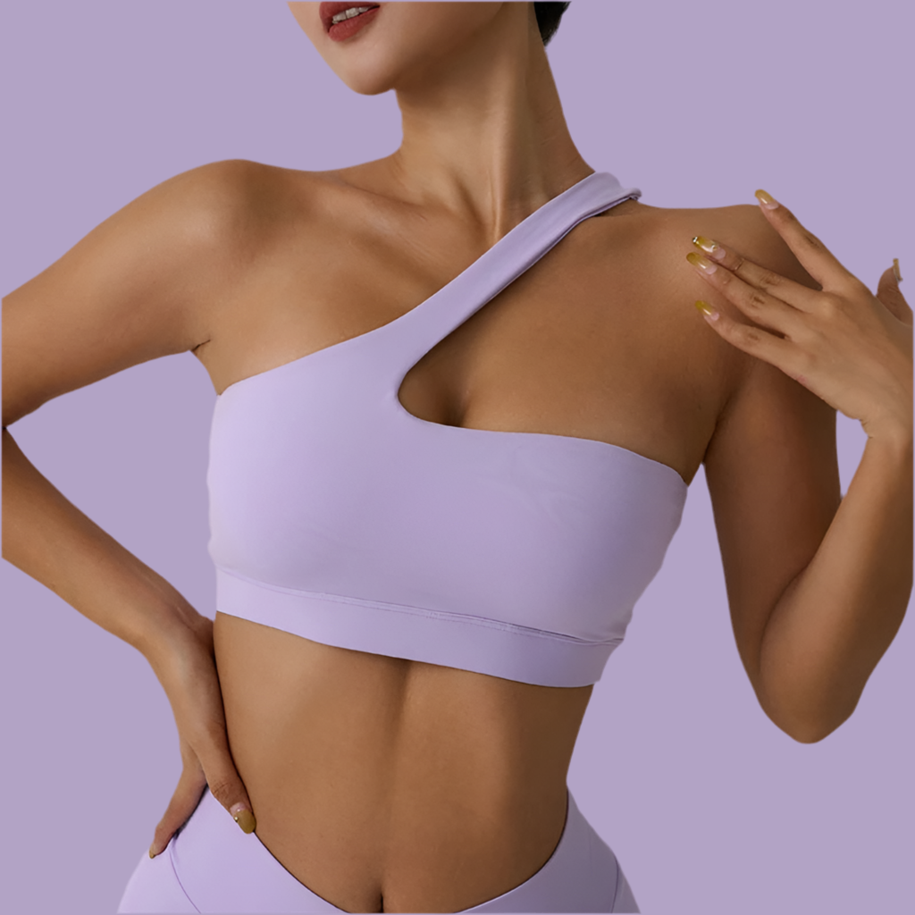 Elevate your activewear look with the One-Shoulder Sculpt Bra—a sleek, asymmetrical design made to turn heads and support movement. With a flattering one-shoulder strap and removable padding, this bra blends minimal style with functional support. The smooth, stretch fabric offers light-to-medium hold, ideal for yoga, pilates, or styling under your favorite layers.