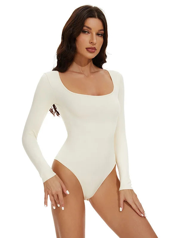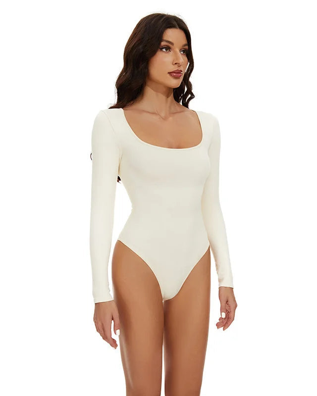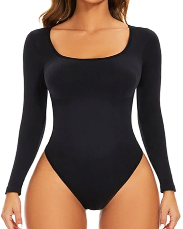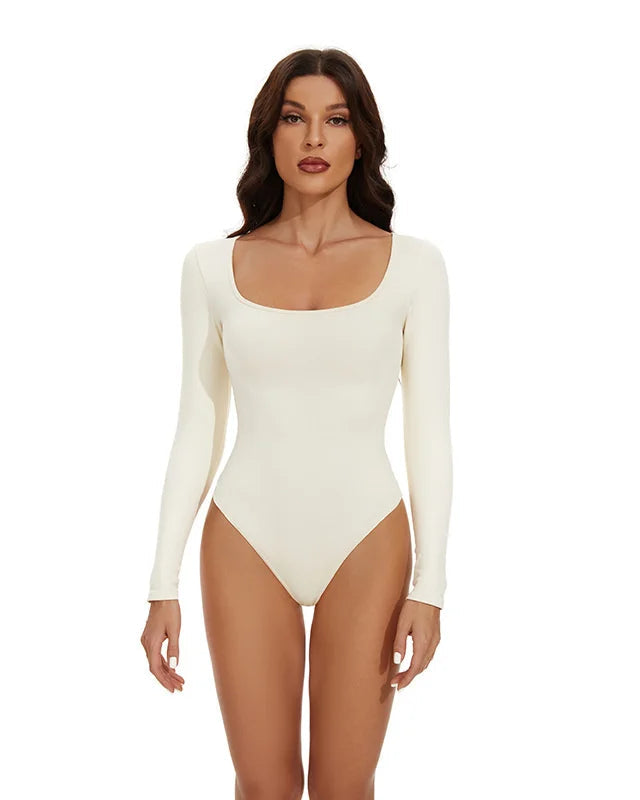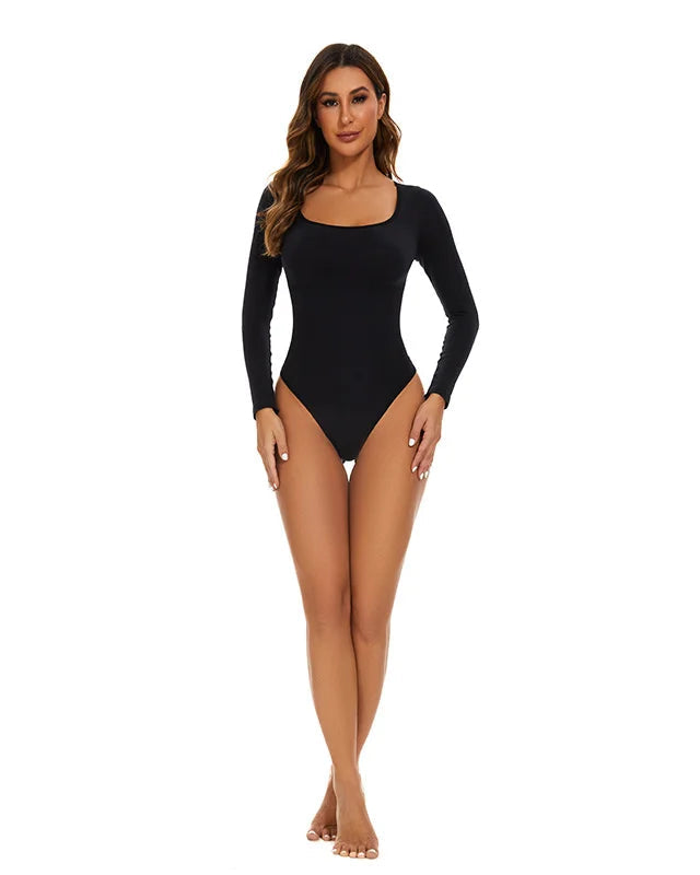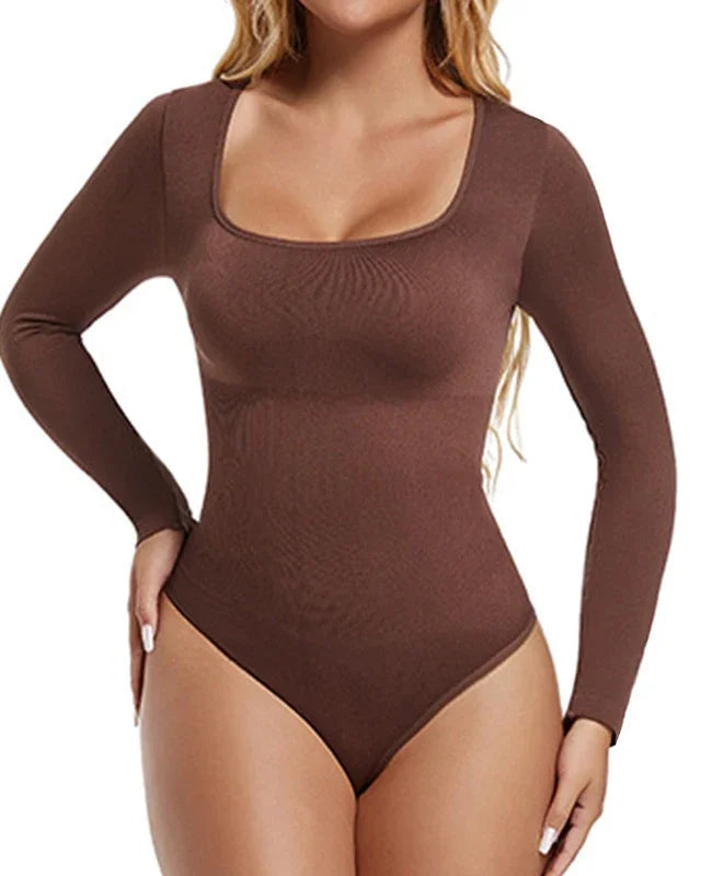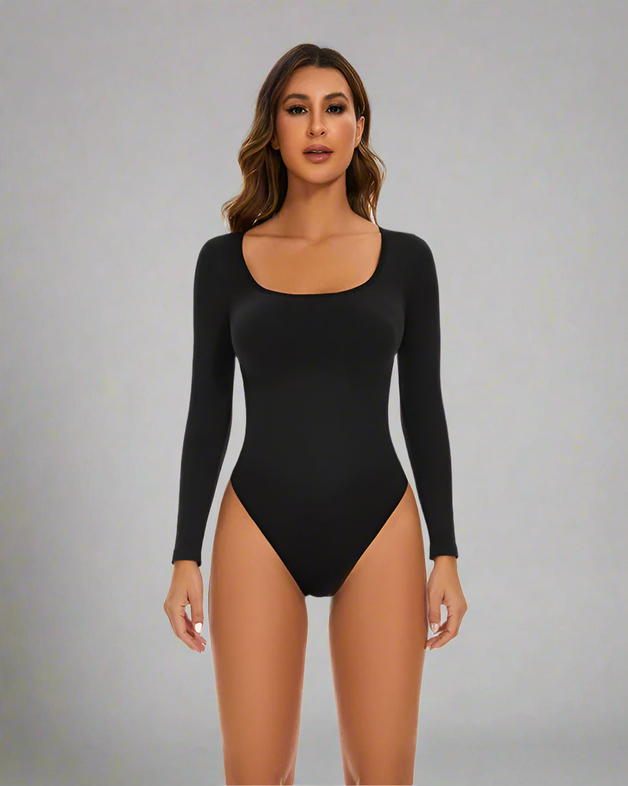 Sculpt Square Neck Long Sleeve Shapewear Thong Bodysuit
