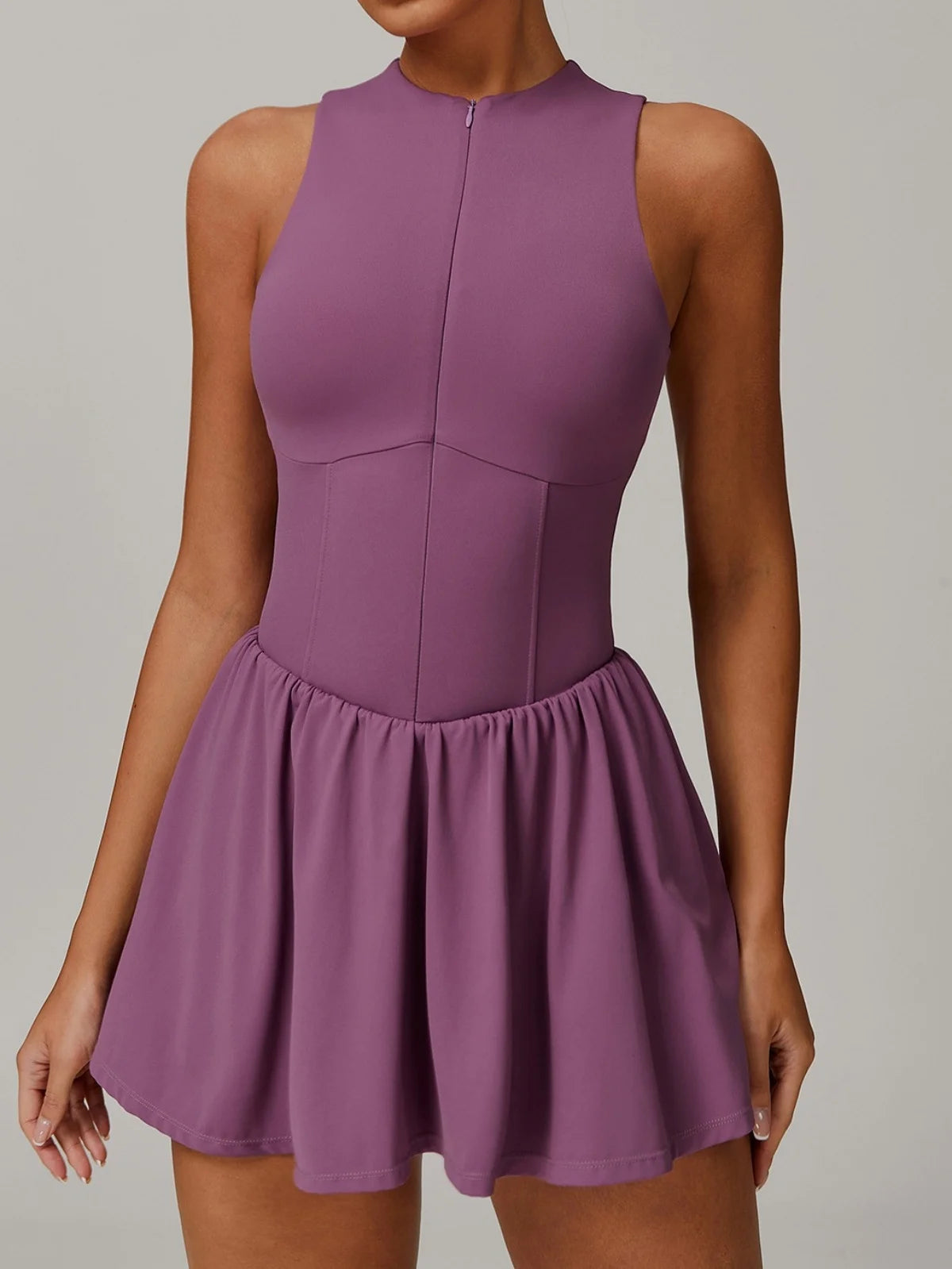 Engineered for movement and style, the FlexForm Zipper Tennis Dress offers a sleek, slim fit with the convenience of a front zipper and breathable, soft fabric. Designed with a stand-up collar and built-in skort with pockets, it combines athletic performance with modern minimalism. Perfect for tennis, yoga, or any active day where you want comfort and confidence in every move.