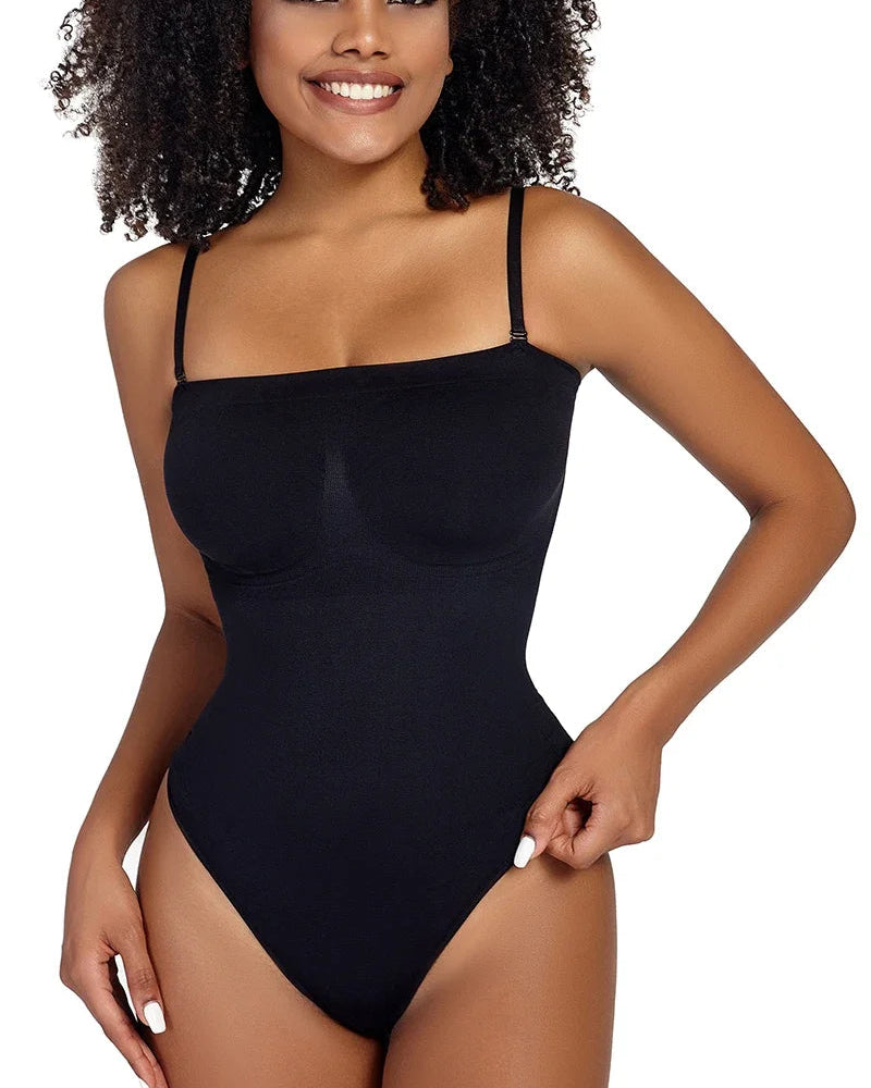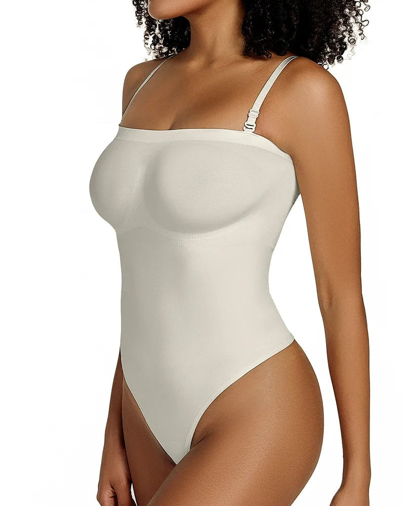 Introducing our Strapless Shapewear Bodysuit, designed for a flawless, sculpted look with maximum coverage, lift, and flexibility. Made from breathable, stretchable fabric, it molds seamlessly to your curves while maintaining its shape wear after wear. For added versatility, adjustable and removable shoulder straps provide a customized fit and gentle lift for a flattering silhouette. The hook-and-eye crotch closure allows for easy adjustments and convenience throughout the day. Whether worn strapless or with added support, this bodysuit is the perfect foundation for any outfit.